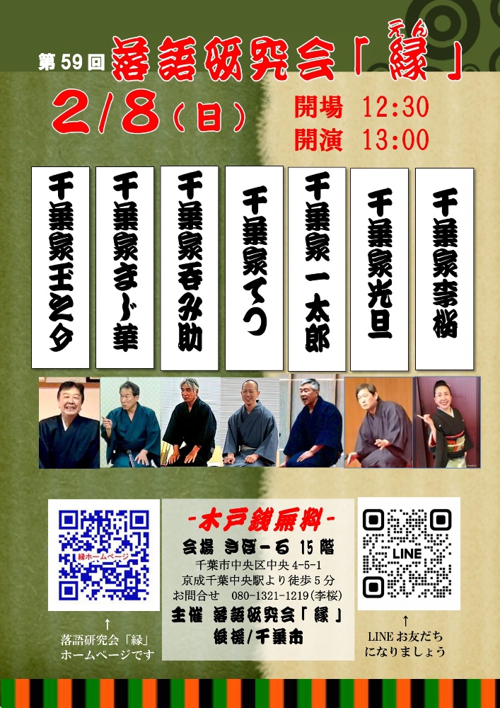 2026年02月08日(日) 13時〜 第59回落語研究会「縁」 会場:きぼーる15階