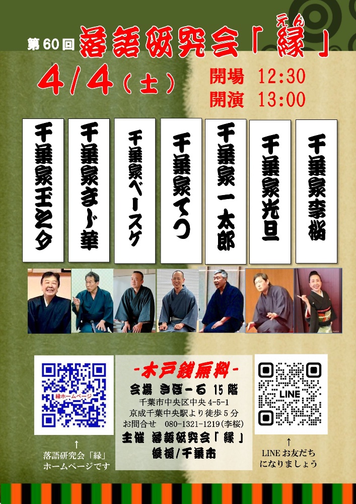 2026年04月04日(土) 13時〜 第60回落語研究会「縁」 会場:きぼーる15階